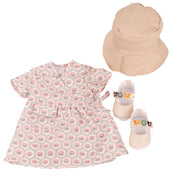 • In deze set zit een wikkeljurk, zonnehoedje en zomerschoentjes