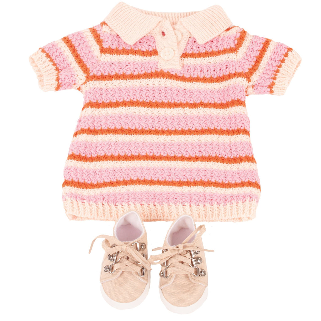 Boutique Combi Stylish Knit is een set poppenkleertjes van het Duitse Götz met een zachte, gestreepte gebreide poppenjurk en past perfect bij de casual canvas sneakers. Ideaal voor stijlvolle poppenmoeders die willen gaan voor comfort én stijl. Met deze poppenoutfit wordt elk poppenuitje een echte blikvanger!