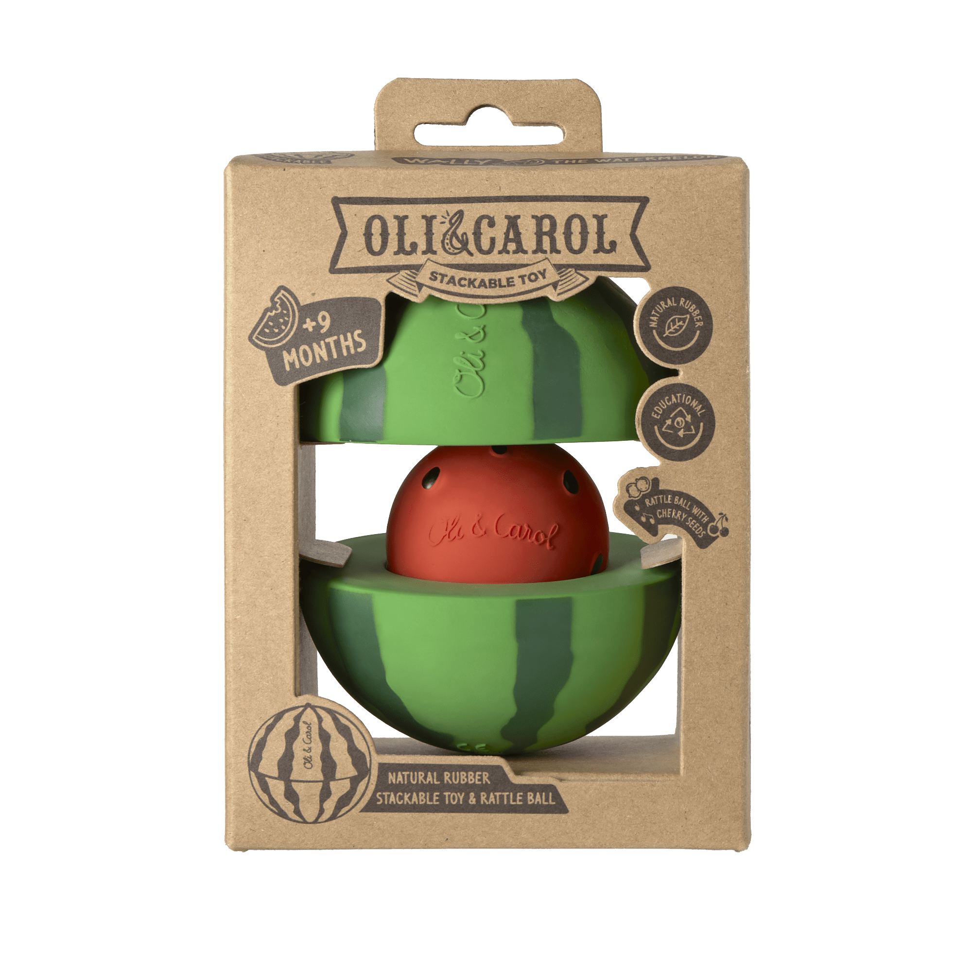 Oli & Carol blijft ons verbazen met slim design en fruitige eerste speeltjes: zo ook deze Stack & Bounce Watermelon: een 3-in-1 rubberen babyspeeltje met verschillende functies en oneindig veel speelplezier. Dit speelgoed is meer dan stapelspeelgoed: speel, schud, gooi of laat rollen... en ontdek telkens iets nieuws.
