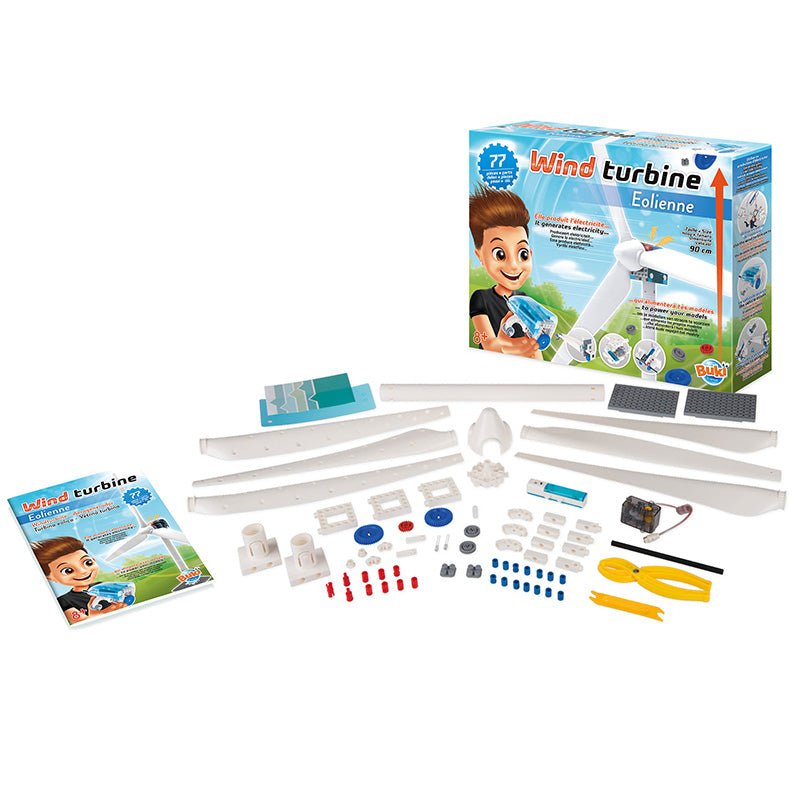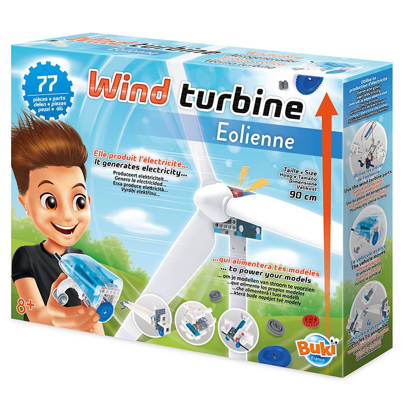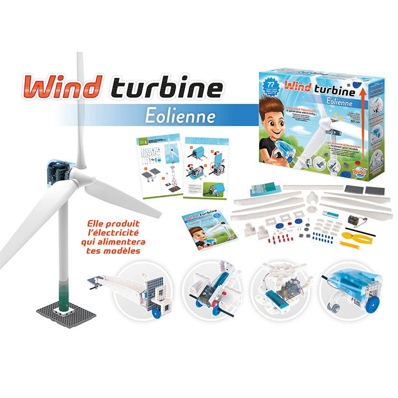 Leer spelenderwijs over duurzame energie met deze indrukwekkende windturbine van 90 cm hoog uit de Windturbine Eolienne speelset van Buki uit Frankrijk.