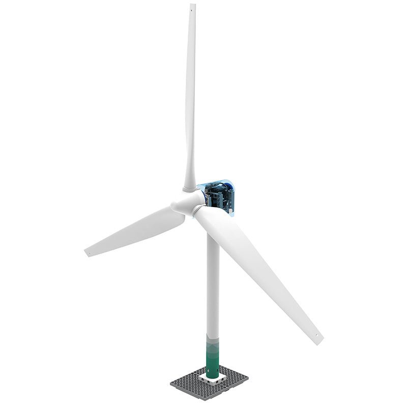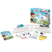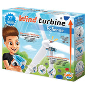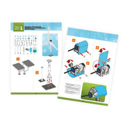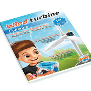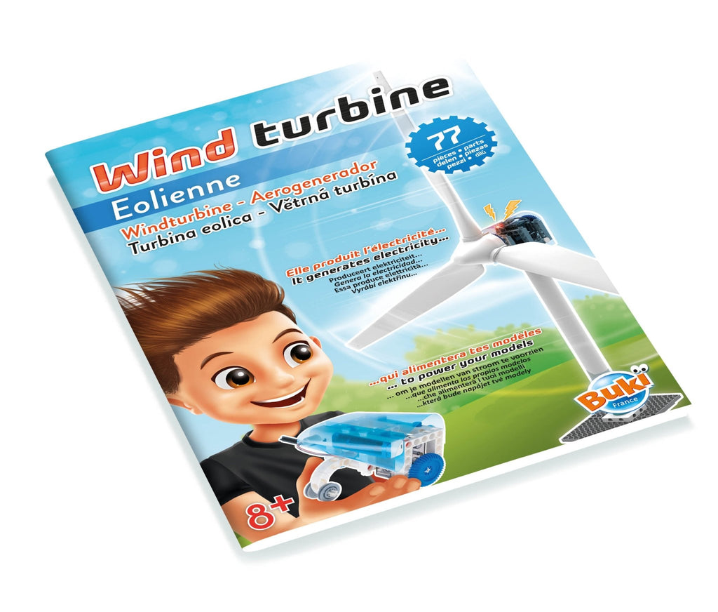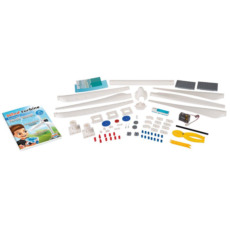 Zet hem zelf in elkaar en plaats hem buiten in de wind. De draaiende wieken wekken echte elektriciteit op. De stroom laadt een batterij op (niet inbegrepen), waarmee je vervolgens een zelfbouwvoertuig kunt aandrijven.