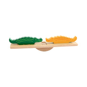Dier op dier is een populair behendigheidsspel van Haba dat sinds 2005 kinderen uitdaagt om een zo veel en zo hoog mogelijke dierentoren te bouwen. In deze luxe limited edition versie zit een wiebelige wip en 30 houten dieren.