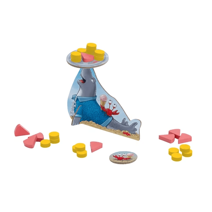 Een grappig vormgegeven behendigheidsspel, waarbij je ijsjes stapelt op het dienblad van zeehond Robbie Gelato. Op een warme dag wil je vaak niets liever dan een koud ijsje. Dat komt goed uit, want hier komt Robbie Gelato met een dienblad vol! In dit handzaam behendigheidsspel stapelen de spelers om de beurt een ijsje op het dienblad van Robbie Gelato. Dat is moeilijker dan het klinkt, want de zeehond balanceert het dienblad op zijn neus, waarmee hij vervaarlijk heen en weer wankelt. Kies een ijsje, plaats het op het dienblad en beweeg Robbie daarna heen en weer. Blijft alles liggen? Dan is de volgende speler aan de beurt. Als er ijsjes van het dienblad vallen, moet je er helaas eentje pakken. De speler die als eerste al zijn ijsjes kwijt is, wint het spel. Dat is niet alleen een leuke manier van spelen, maar zo train je ook de fijne motoriek en de concentratie. Een top spel voor kinderen vanaf 6 jaar, en ook nog eens compact verpakt, dus perfect voor mee op vakantie!