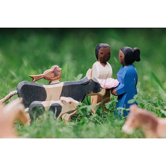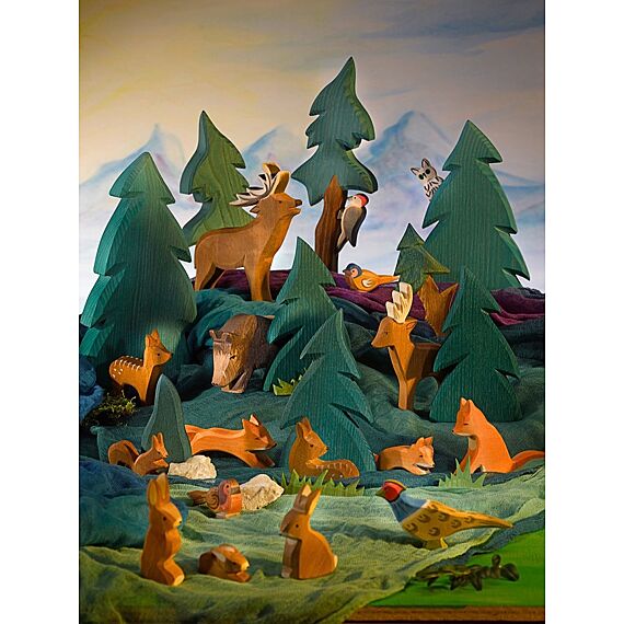 Elk figuurtje wordt met de hand gemaakt in Duitsland, met hout uit duurzame binnenlandse bosbouw. Elk houten diertje uit de Ostheimer collectie is een uniek stuk dat met veel liefde en de nodige zorg is gemaakt. De kleuren zijn op waterbasis zijn licht transparant om de houtnerf te benadrukken, de speelfiguurtjes worden niet afgewerkt met vernis om de schoonheid van het hout zichtbaar te houden. De ongelakte beeldjes zijn geolied met plantaardige olie uit biologische landbouw.
