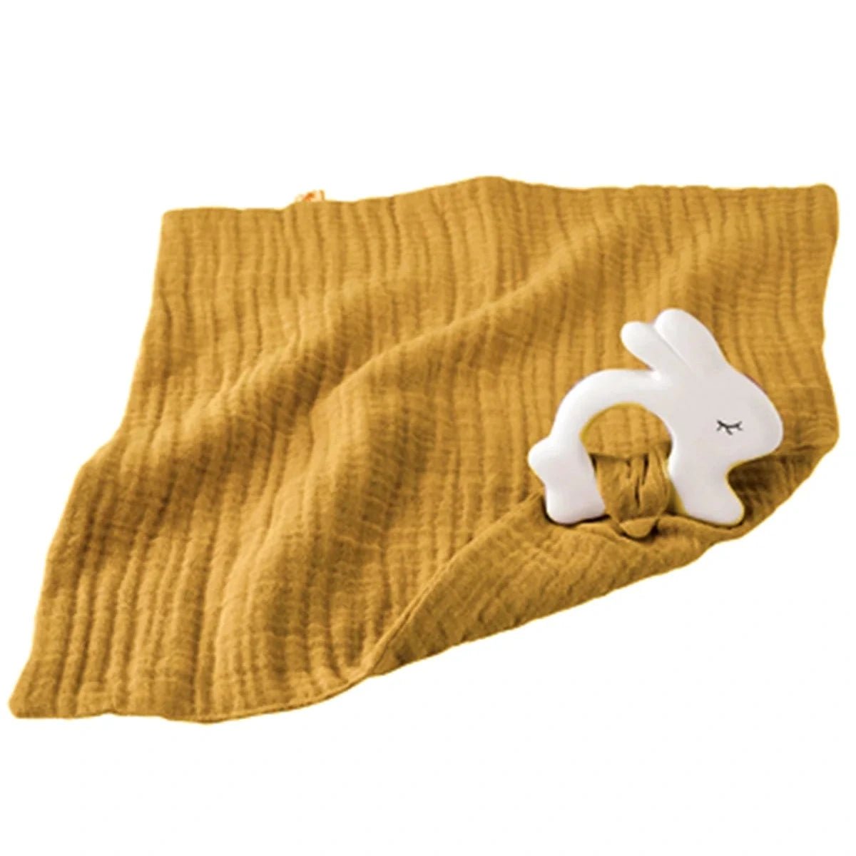 Rubberen konijntje met knuffeldoekje Mosterd