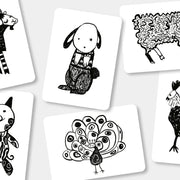 Deze fantasierijke zwart-wit flashkaarten Boerderij van Mini Coco zijn speciaal ontworpen voor de allerkleinsten. Pasgeboren baby's kunnen maar tot 30 cm zien en zijn, naast de gezichten van hun ouders, het meest gefascineerd door contrastrijke afbeeldingen, vormen en patronen.