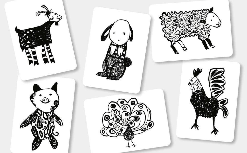• Zwart-wit kijkkaarten in boerderij thema van Mini coco