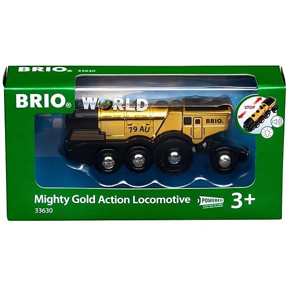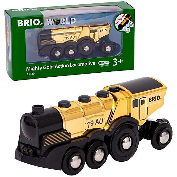 De Mighty Gold Action Locomotive bundelt kracht en stijl op de rails! Ervaar krachtig bouwspeelgoed in een luxe jasje met de BRIO Mighty Gold Action Locomotive. Deze stoere batterij-aangedreven speelgoedtrein met zijn opvallende goudkleurige details is een echte eyecatcher in elke BRIO World treinset. Met werkende koplampen, realistische rijbewegingen en een robuust design is deze locomotief perfect voor kleine machinisten die houden van actie en avontuur.