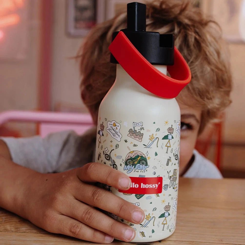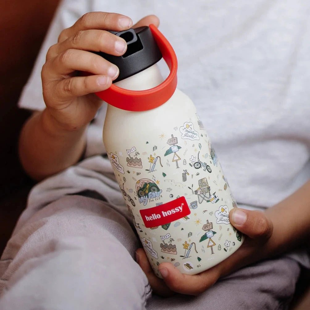 Eén blik op de Hello Hossy drinkflessen en je weet meteen dat elk drinkmoment vanaf nu leuker wordt. Isothermische drinkfles Mountain Ride is een bestseller, de dubbelwandige RVS waterfles is ontworpen voor Cool Kids Only: uniek design, stevig en makkelijk in gebruik.