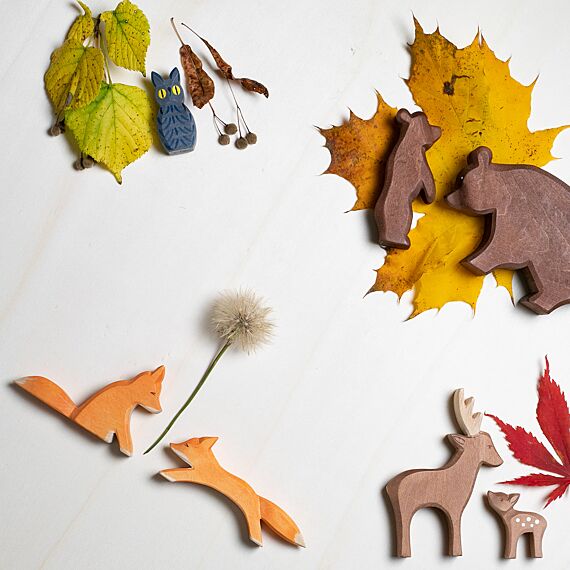 Elk figuurtje wordt met de hand gemaakt in Duitsland, met hout uit duurzame binnenlandse bosbouw. Elk houten diertje uit de Ostheimer collectie is een uniek stuk dat met veel liefde en de nodige zorg is gemaakt. De kleuren zijn op waterbasis zijn licht transparant om de houtnerf te benadrukken, de speelfiguurtjes worden niet afgewerkt met vernis om de schoonheid van het hout zichtbaar te houden. De ongelakte beeldjes zijn geolied met plantaardige olie uit biologische landbouw.