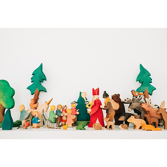 Elk figuurtje wordt met de hand gemaakt in Duitsland, met hout uit duurzame binnenlandse bosbouw. Elk houten diertje uit de Ostheimer collectie is een uniek stuk dat met veel liefde en de nodige zorg is gemaakt. De kleuren zijn op waterbasis zijn licht transparant om de houtnerf te benadrukken, de speelfiguurtjes worden niet afgewerkt met vernis om de schoonheid van het hout zichtbaar te houden. De ongelakte beeldjes zijn geolied met plantaardige olie uit biologische landbouw.