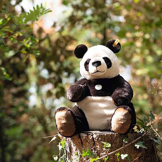 Pandi Reuzenpanda uit de collectie van Steiff is extra knuffelbaar dankzij zijn vulling, die gemaakt is van gerecyclede PET-flessen. Zijn knuffelige, mollige lijfje is gehuld in een knusse, zachte pluchen vacht, die ook gemaakt is van gerecyclede PET-flessen, en één lieve blik van die trouwe, donkere ogen van hem zal elk hart doen smelten. Hij blijft op zichzelf zitten dus is ook leuk als decoratie van de kinderkamer.