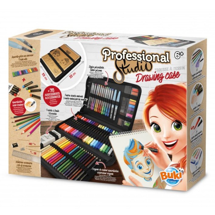 Professional Studio Teken Etui met 70 accessoires - Kleuren en tekenen Buki - In den Olifant