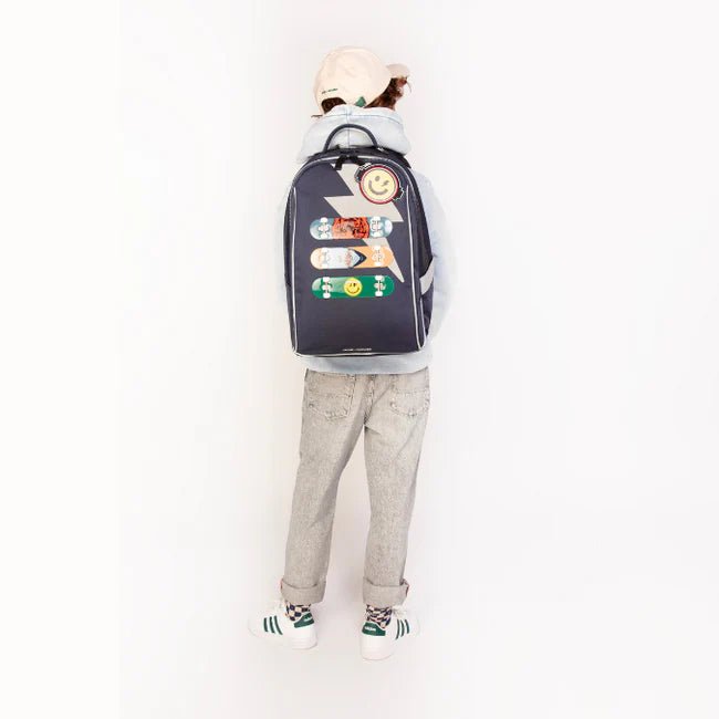 Backpack James Skate springt uit de Jeune Premier Popcorn collectie, net zoals echte popcorn. Deze trendy rugzak met handige vakken en echte skateboards op de voorkant is geschikt voor coole skaterfans vanaf 8 jaar!