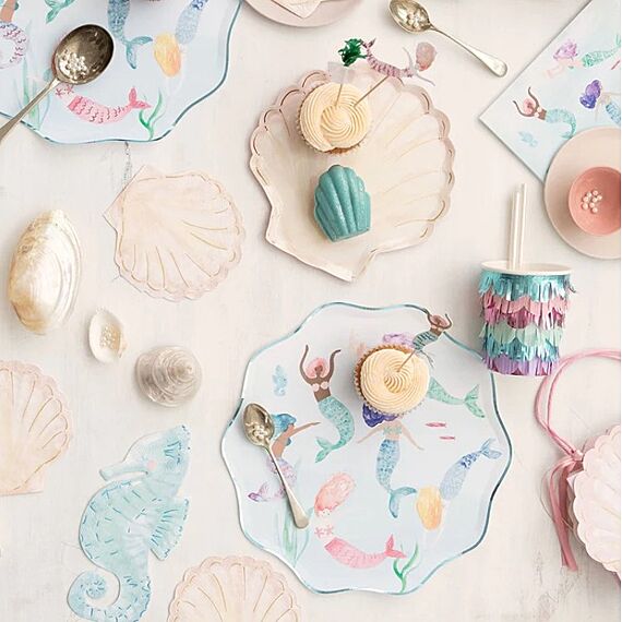 Set Van 8 Borden | Mermaids Swimming Plates - Feestbordjes Meri Meri - In den Olifant