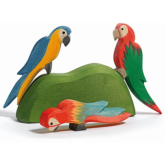 Speelfiguur Papegaai Gekleurd van Ostheimer is de kleurrijkste vogel uit jouw speelgoedcollectie. Plaats hem op de houten vogelboom of geef hem een plek bovenop je poppenhuis. Mijn verenkleed glanst in vele kleuren en ik kijk graag naar de wereld van bovenaf, op de top van een boom of de mast van een schip.