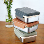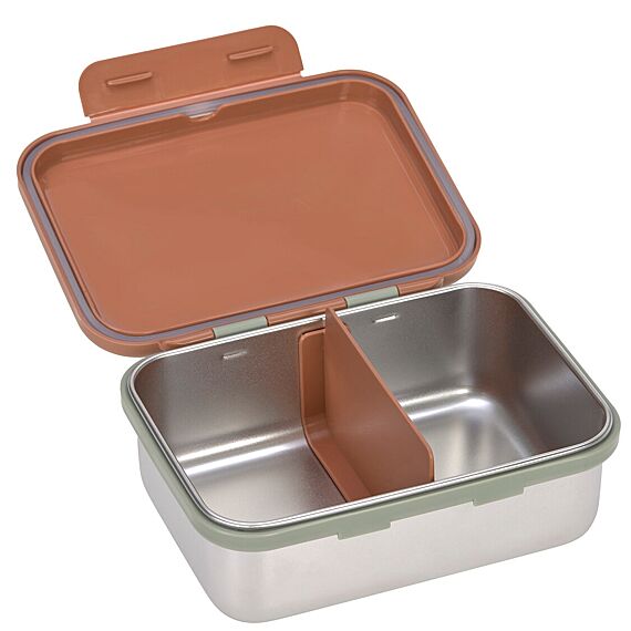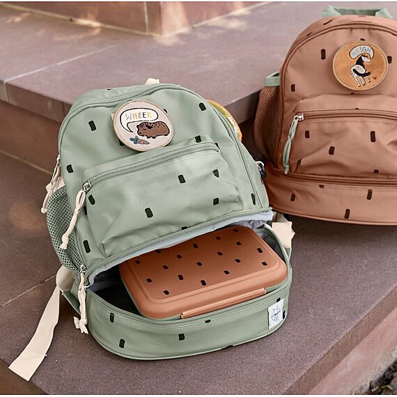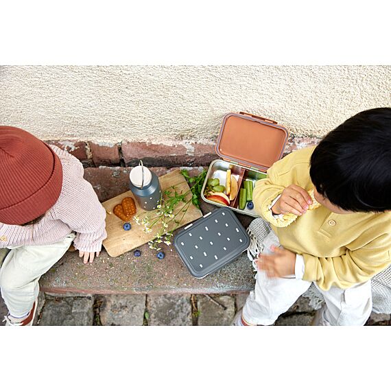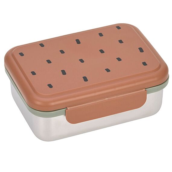 Kindjes zijn vaak hongerig, als je een lunch meeneemt of meegeeft in de stevige LÄSSIG lunchbox van roestvrij staal krijgt honger geen kans en lunch je altijd in stijl. De stalen brooddoos heeft een caramelkleurig deksel uit de Happy Prints-collectie met handige clips, allemaal BPA-vrij en vaatwasmachinebestendig.