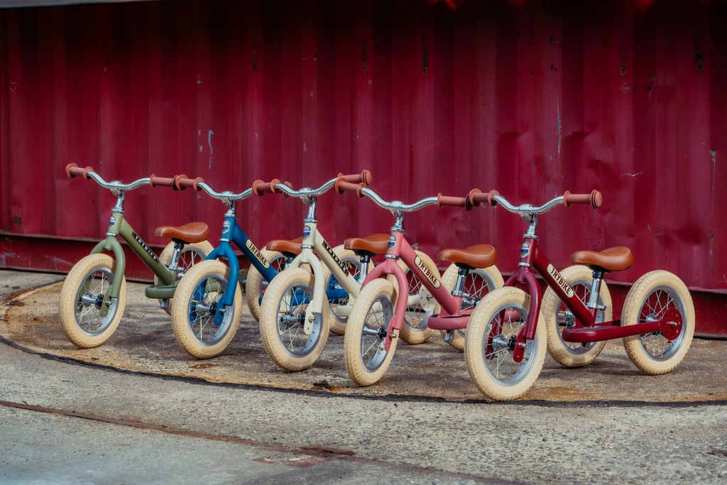 De eerste loopfiets die wij eigenlijk als kind hadden willen hebben... meet Trybike! Deze 2-in-1 stalen stalen loopfiets is de enige loopfiets op de markt die al geschikt is voordat je kindje kan lopen, en nadien stap voor stap meegroeit met je mini coureur.