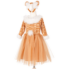 Verkeed je als tijger in de Souza for kids verkleedjurk Thara Tijger met bijpassend haarband. Het lijfje van de jurk is gemaakt van rekbare zachte velour stof. De tutu rok bestaat uit meerdere lagen stof: de voering met daaroverheen brede stroken tule in verschillende kleuren bruin. Trek deze outfit aan en je hebt meteen een originele look voor carnaval, een verkleedfeestje of verjaardagsfeest in circus thema.